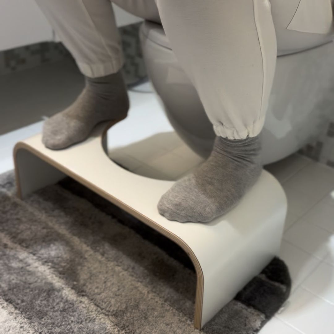 Luonnollinen ulostusasento helpottaa suolen toimintaa. Kun polvet ovat hieman navan yläpuolella ja selkä rentona, peräsuolen kulma suoristuu ja ulostaminen tapahtuu helpommin – ilman ponnistelua.